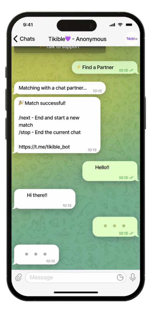 I was nervous at first, but Tikible makes it feel safe even when talking to strangers. Love the anonymity — no pressure to share anything.